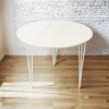 La base, fabricada en hierro soldado reforzado y pintado a horno en blanco o negro, brinda estabilidad y resistencia para el uso diario. Además, cuenta con regatones antideslizantes, protegiendo los pisos y asegurando que la mesa se mantenga firme incluso en reuniones numerosas.