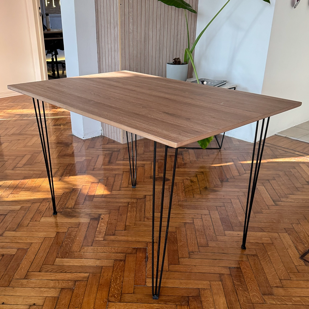 Durabilidad para el día a día: la combinación de madera laqueada y hierro pintado a horno garantiza resistencia al uso intensivo.