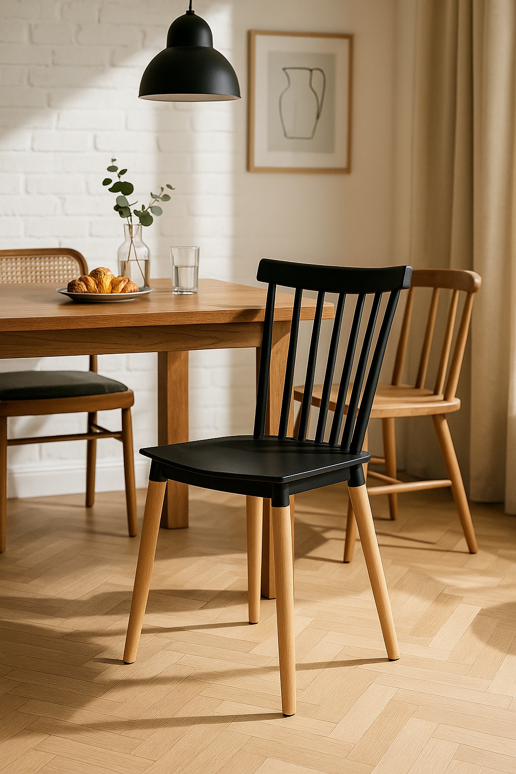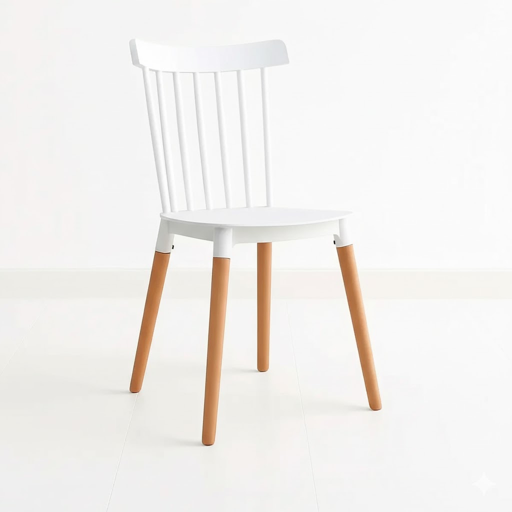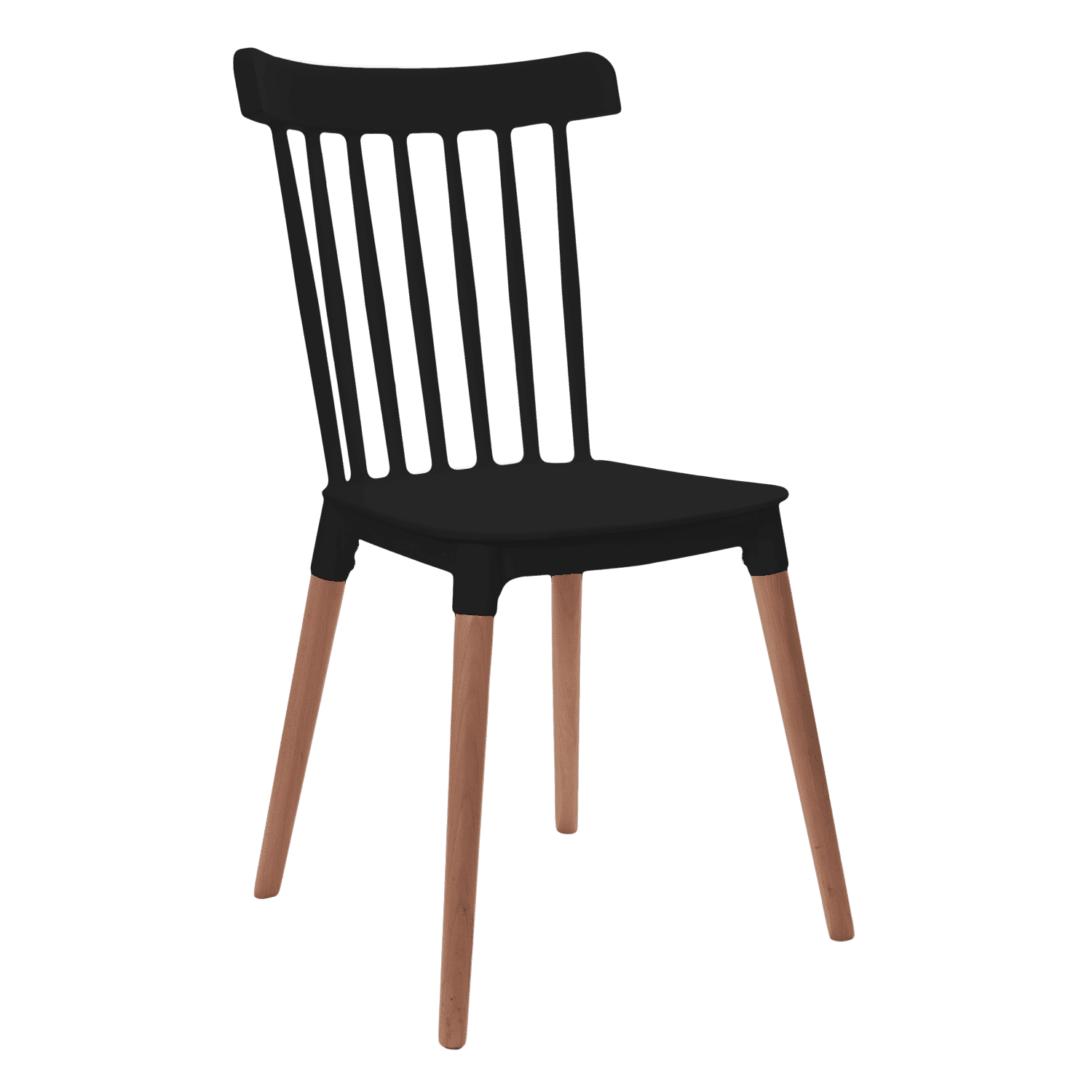 Set de 4 sillas estilo VENECIA, disponibles en color negro o blanco, con estructura firme y resistente. Cuentan con patas de madera y asiento de polipropileno reforzado con fibra de vidrio. Medidas: altura total 80 cm, ancho 42 cm, profundidad del asiento 39 cm, altura del respaldo 40 cm, ancho del respaldo 38 cm y altura del piso al asiento 43 cm. Producto de fabricación nacional (Argentina).