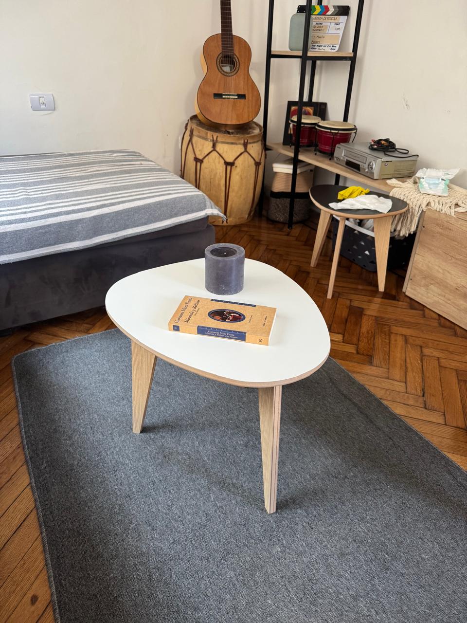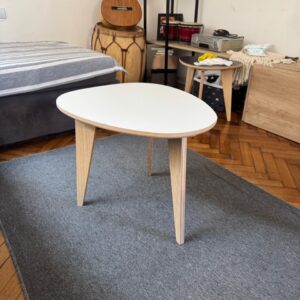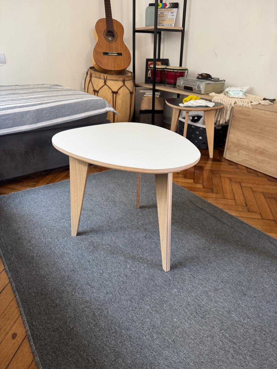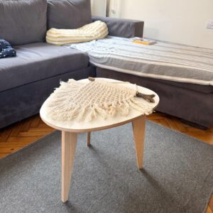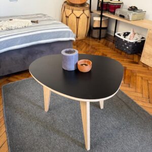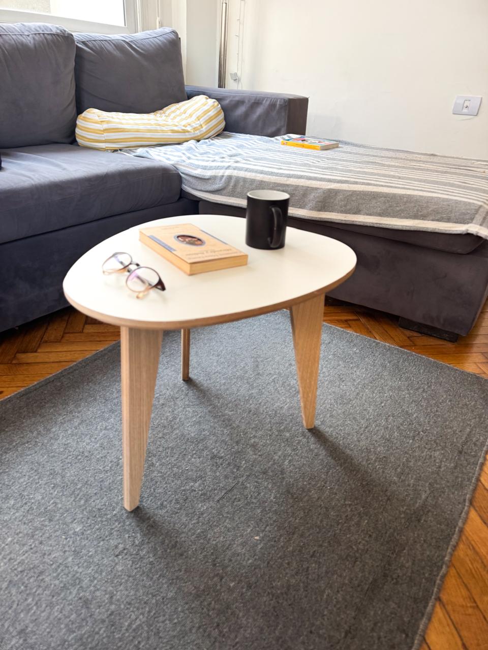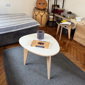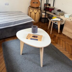 La base con patas de roble americano aporta resistencia y estabilidad, al mismo tiempo que añade un toque natural que realza cualquier espacio. Gracias a su tamaño, la Mesa Ratona Pua Grande es perfecta como mesa central, ideal para apoyar objetos decorativos, libros, flores o simplemente como soporte práctico en reuniones y momentos de relax.