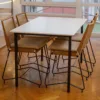 Materiales de calidad: tapa resistente y patas de roble americano que aseguran durabilidad y estabilidad.